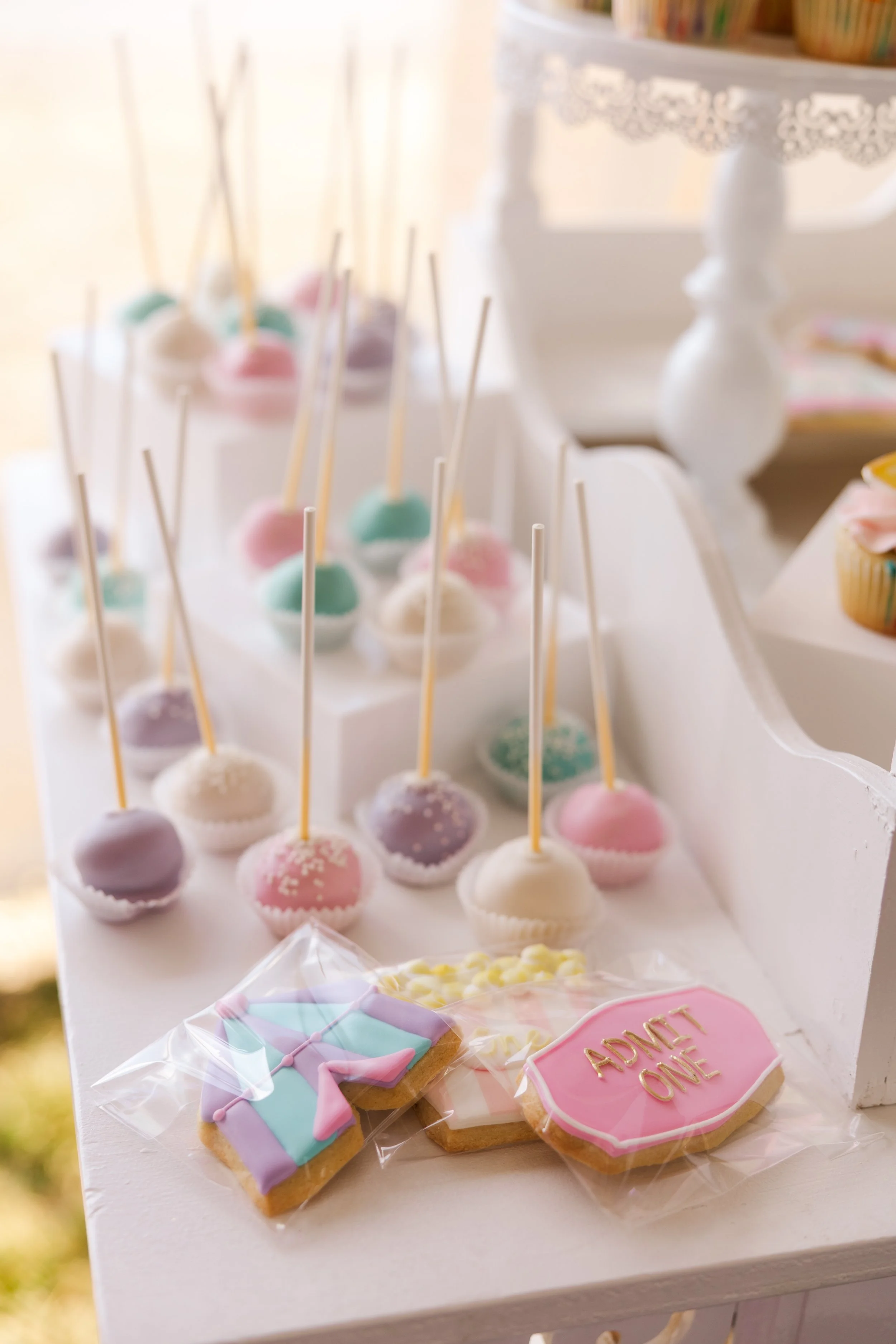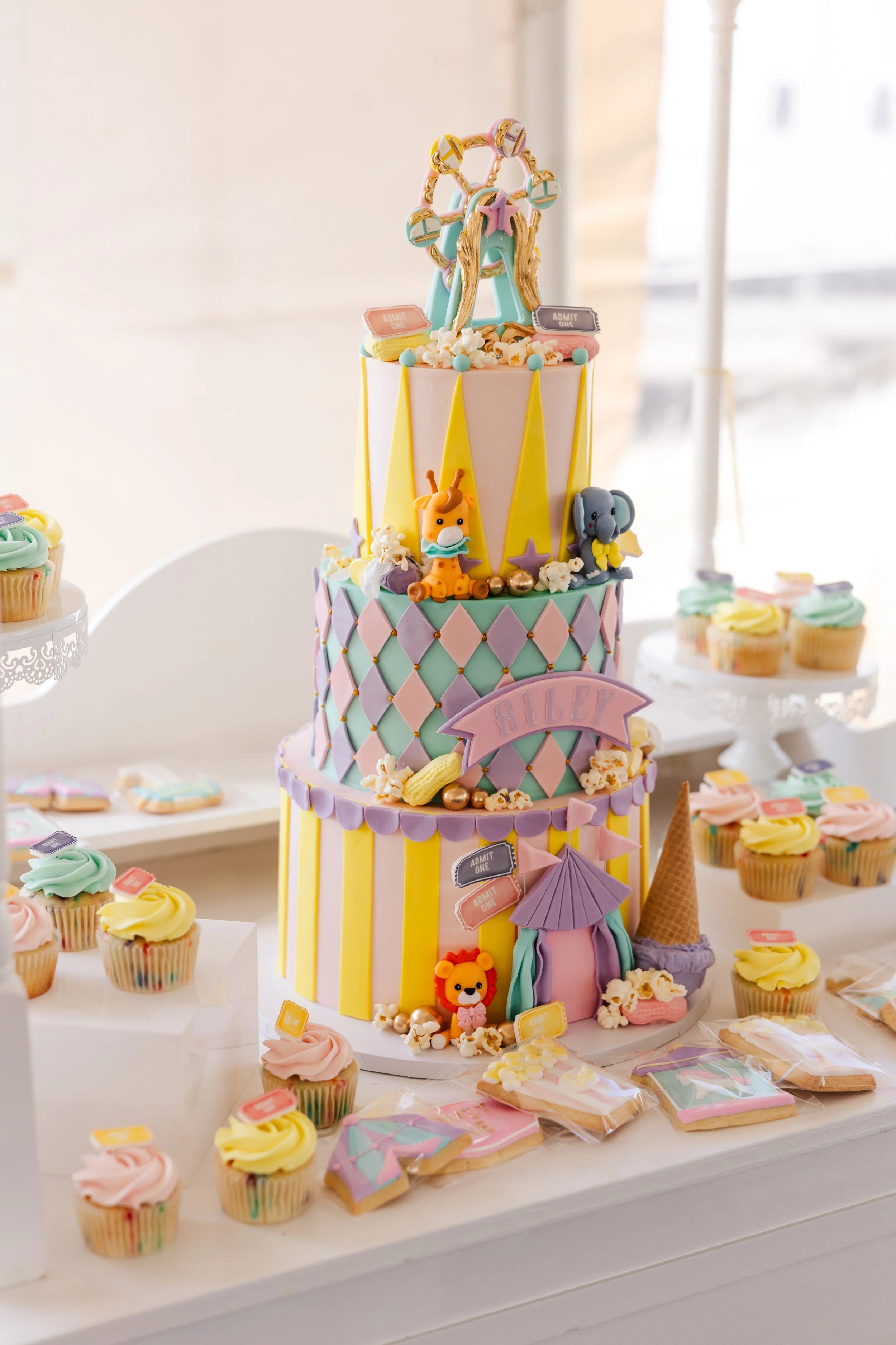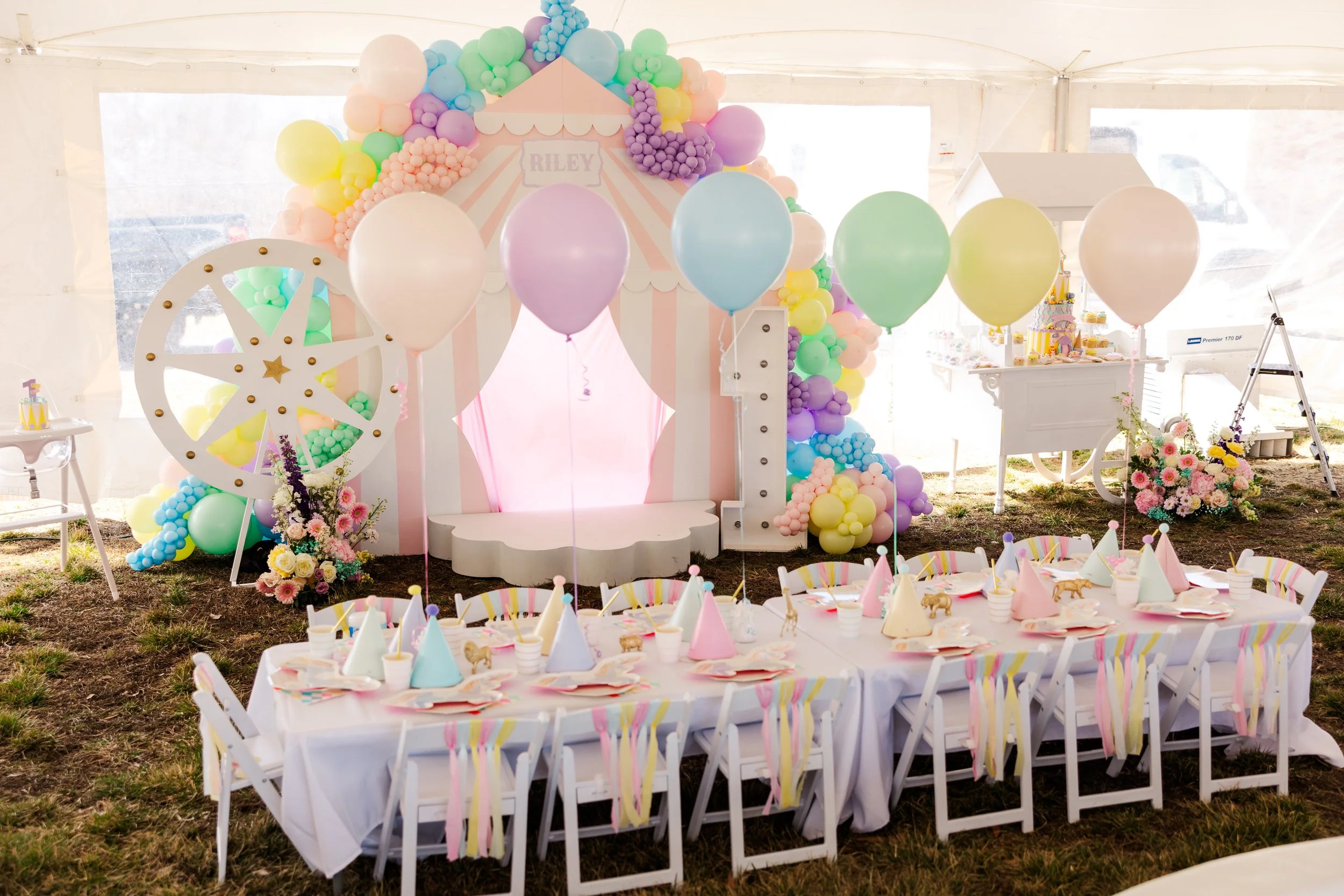 Riley’s Admit One birthday celebration was a dreamy, storybook experience set beneath a tent and designed to feel like stepping into a whimsical world of wonder. Soft pastels, playful patterns, and charming carnival inspired details created an inviting atmosphere where little guests could explore, play, and celebrate in style.