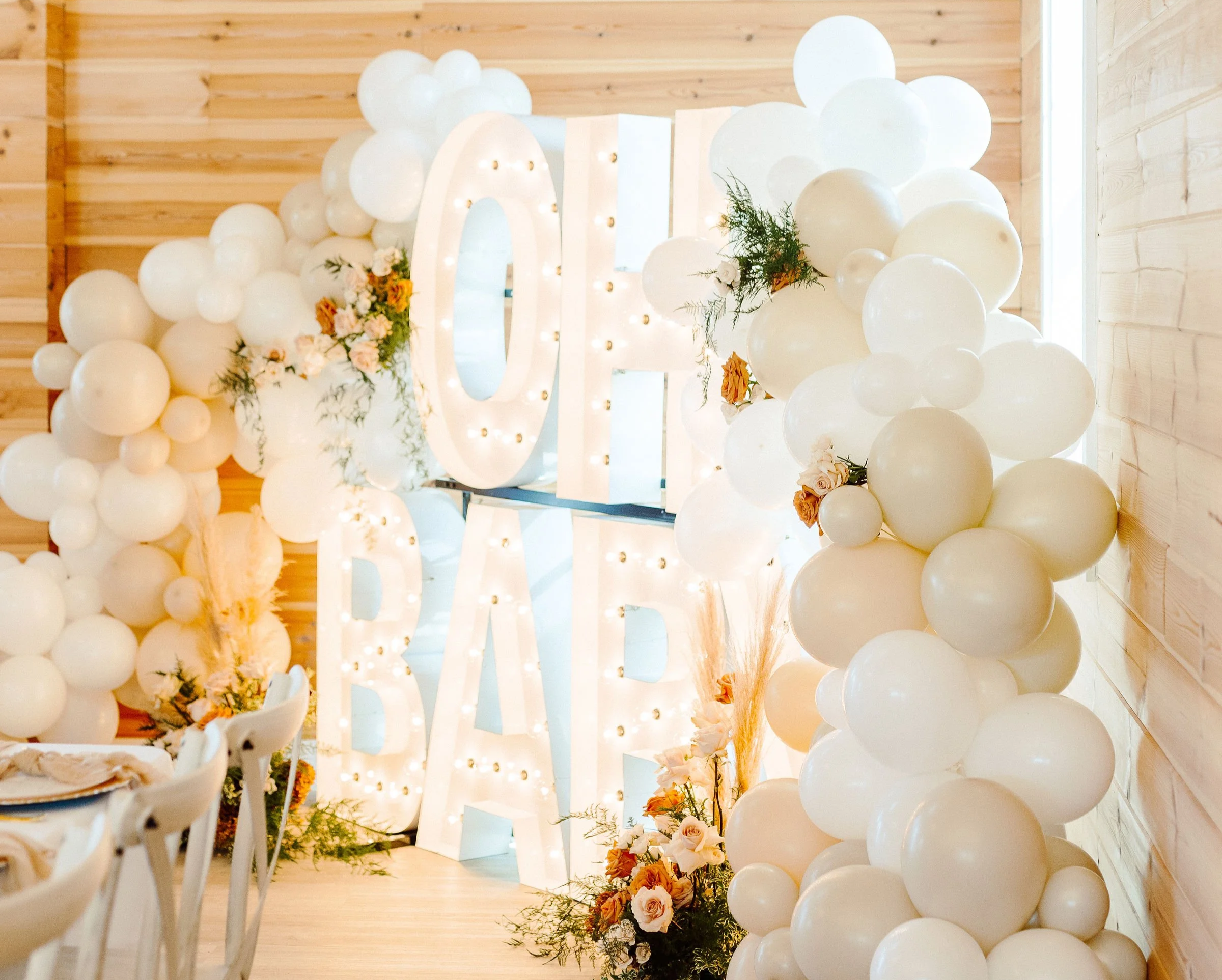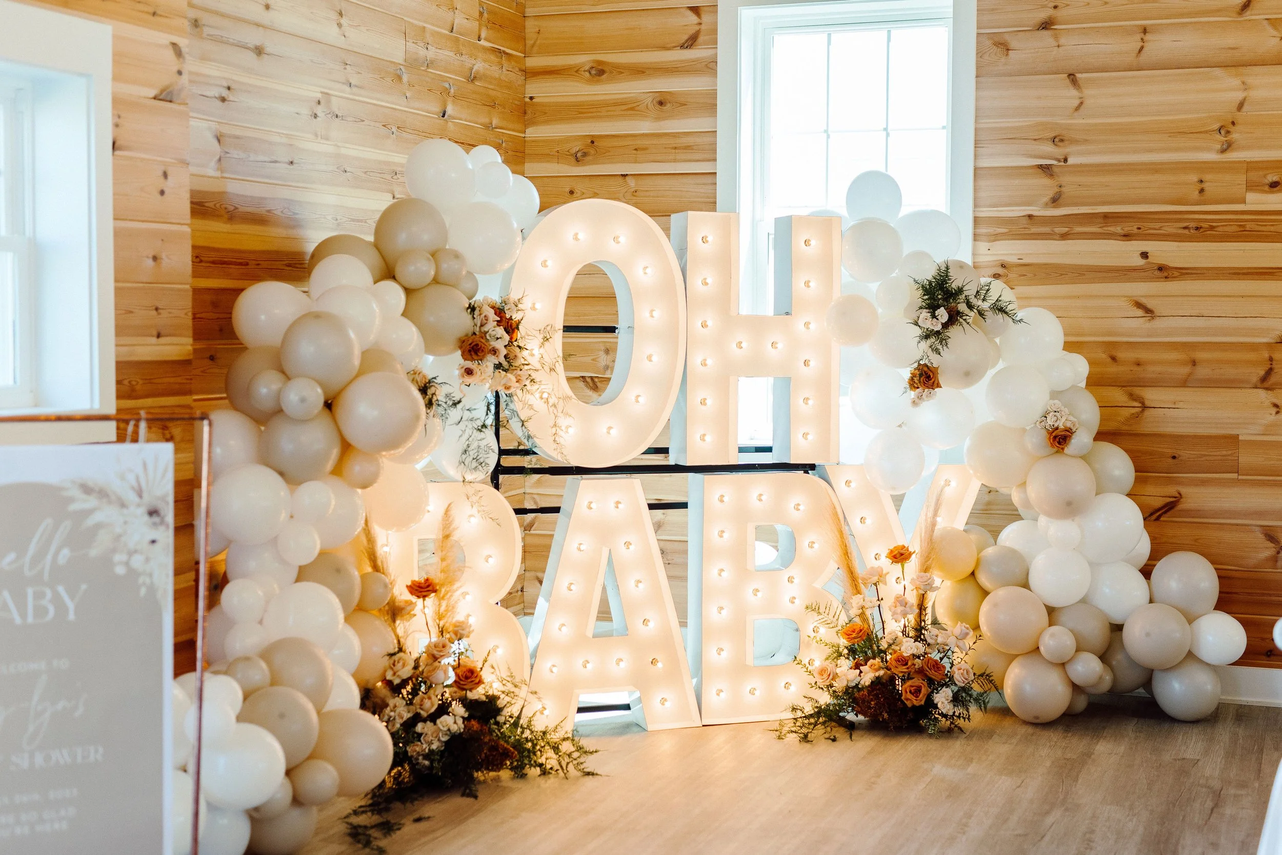 Thoughtfully styled tables, delicate details, and a glowing marquee moment set the tone for a gathering centered on love, anticipation, and connection. Every element came together beautifully to celebrate this sweet chapter, creating a timeless baby shower that felt calm, welcoming, and full of heart.