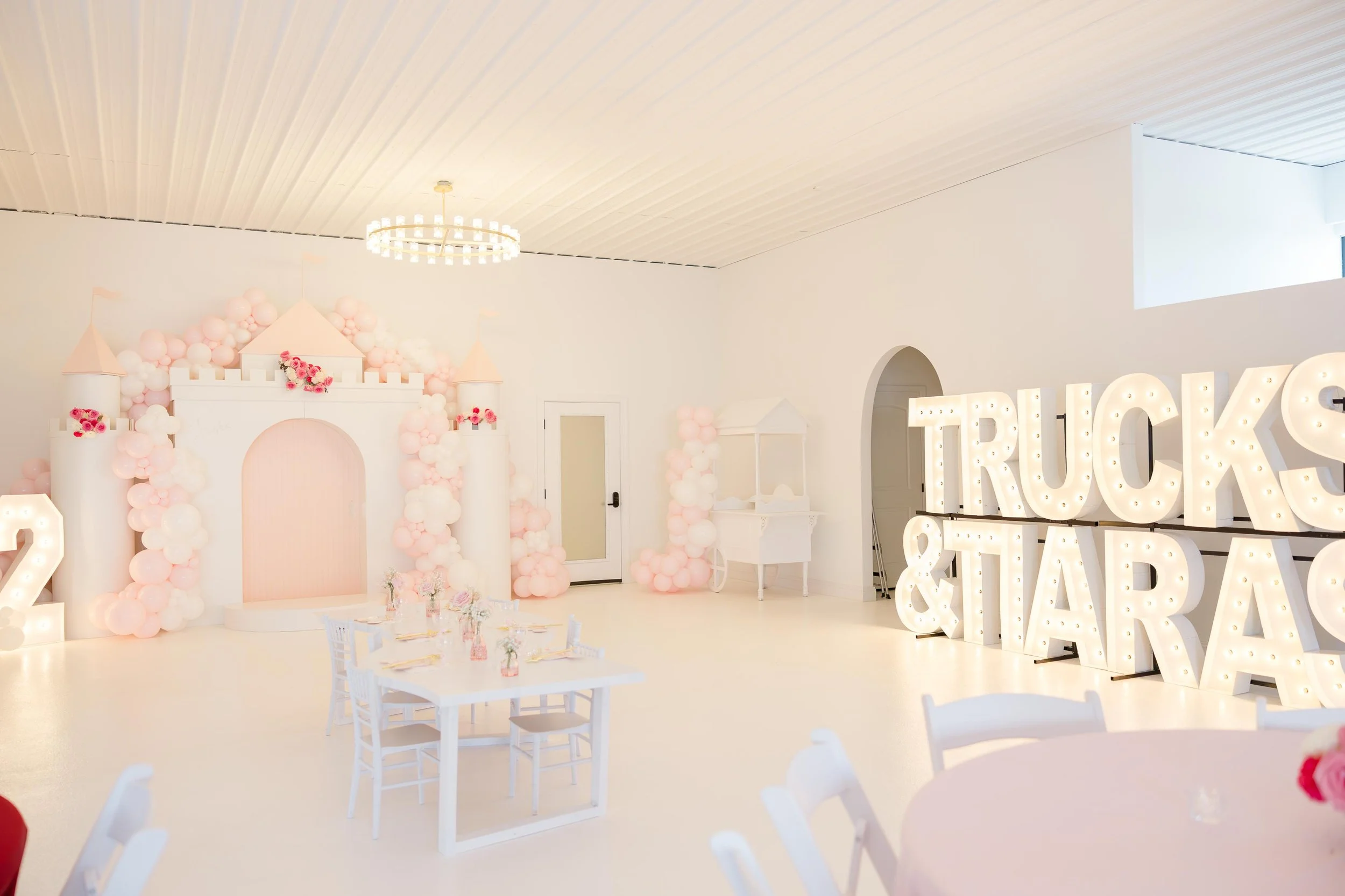 Wyatt & Sophia’s first and second birthday celebration at The Ivory was a playful split-room experience designed to honor two little personalities in one unforgettable space. The room was thoughtfully divided into Fire Trucks and Princess, creating two distinct worlds under one roof.